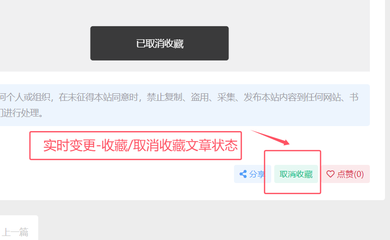 1.收藏文章/取消收藏,会实时变更收藏状态,不用再刷新才看到收藏状态