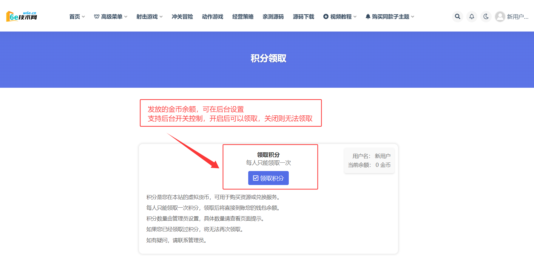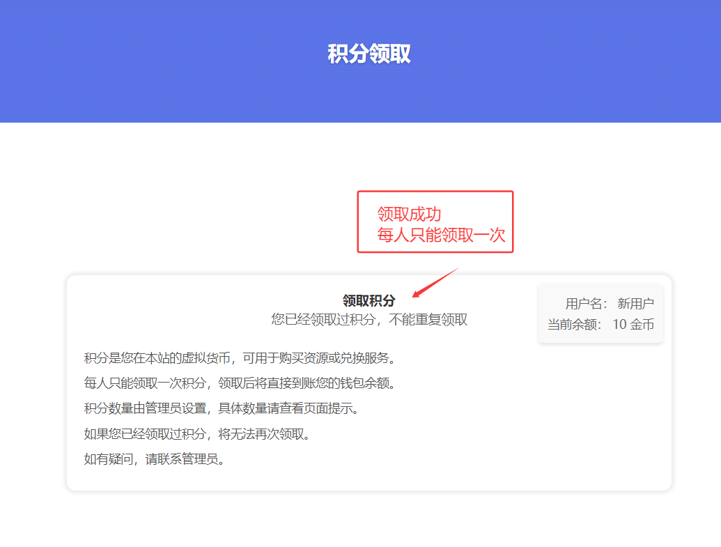 RiPro-V2主题【领取积分余额页面,每人可以领取一次
