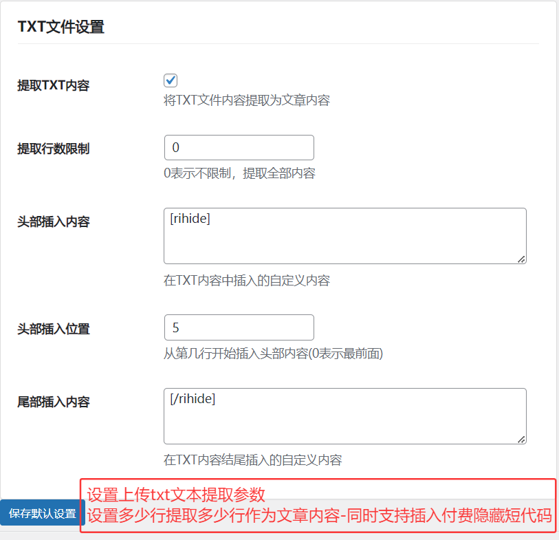 提取txt作为文章内容,还支持插入付费隐藏短代码,可以自定义选择插入位置,完美兼容
