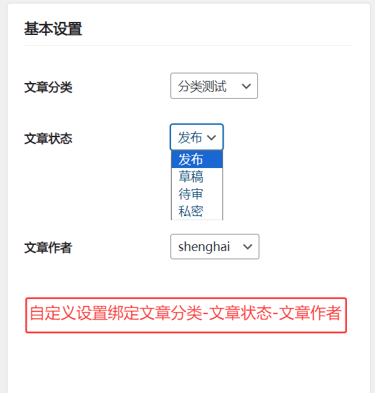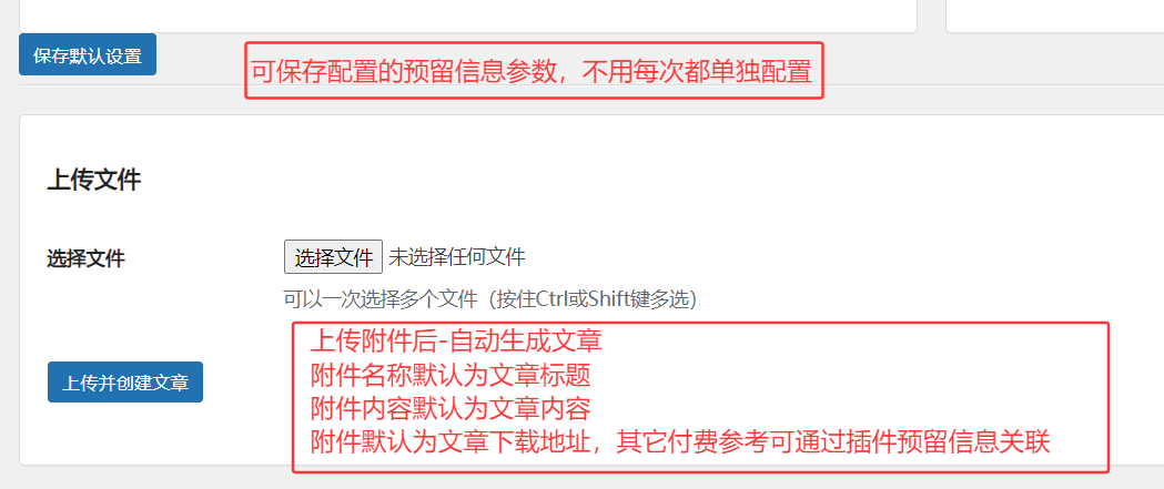 5.可以配置文章默认参数,上传附件后自动关联信息,自动化操作: