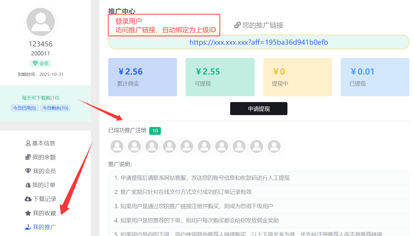 RiPro-V5主题,【访问链接带推广ID自动绑定为上级】