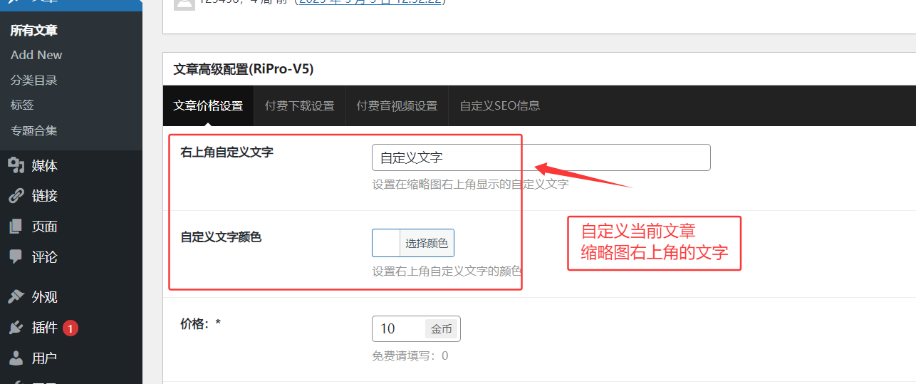 图3.发布文章这里,可以给当前缩略图封面,设置右上角自定义文字(截图展示)