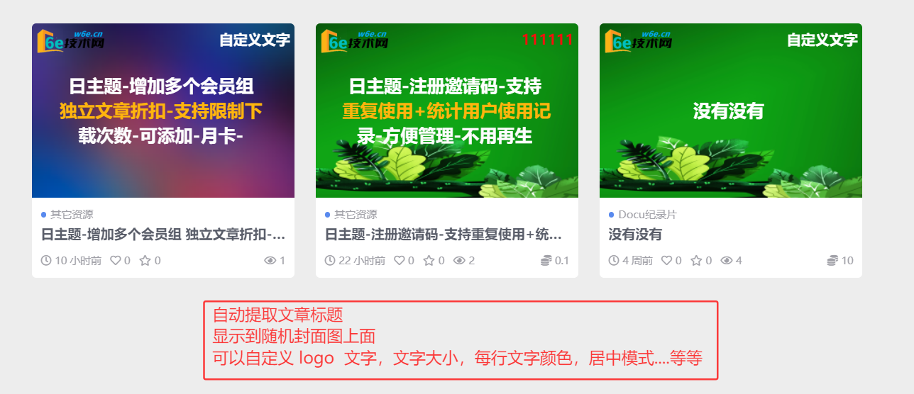 主题自带的随机封面图功能,搭配提取标题显示在封面上,不用再单独给文章生成缩略图,非常方便