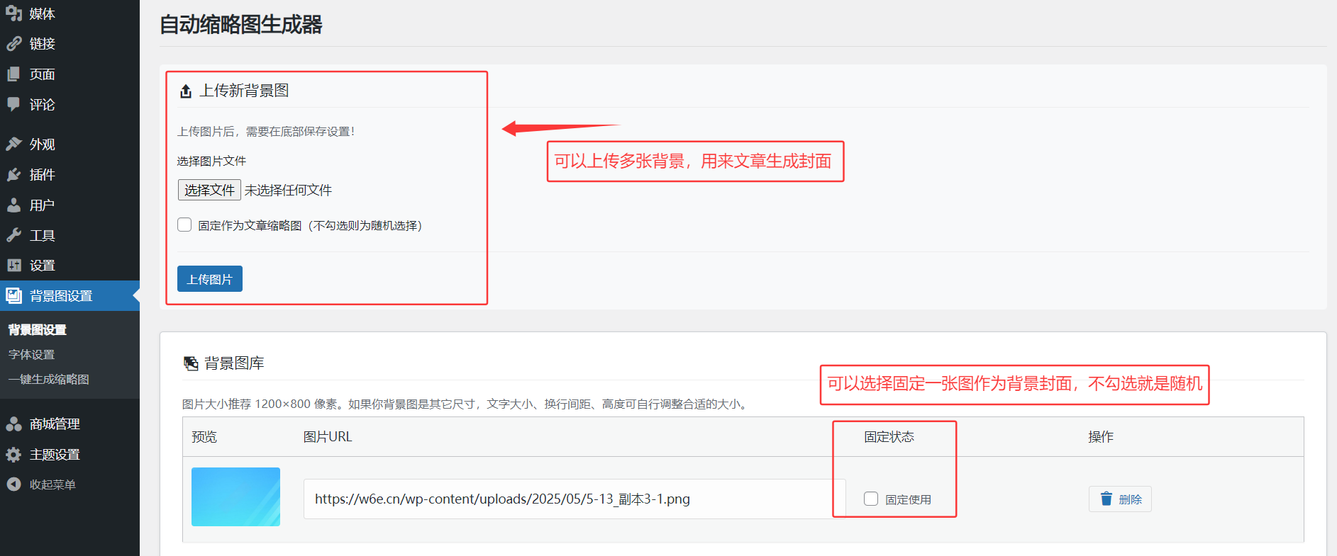 图3.上传背景图片,发布文章的时候,随机调用背景图生成缩略图(截图展示)