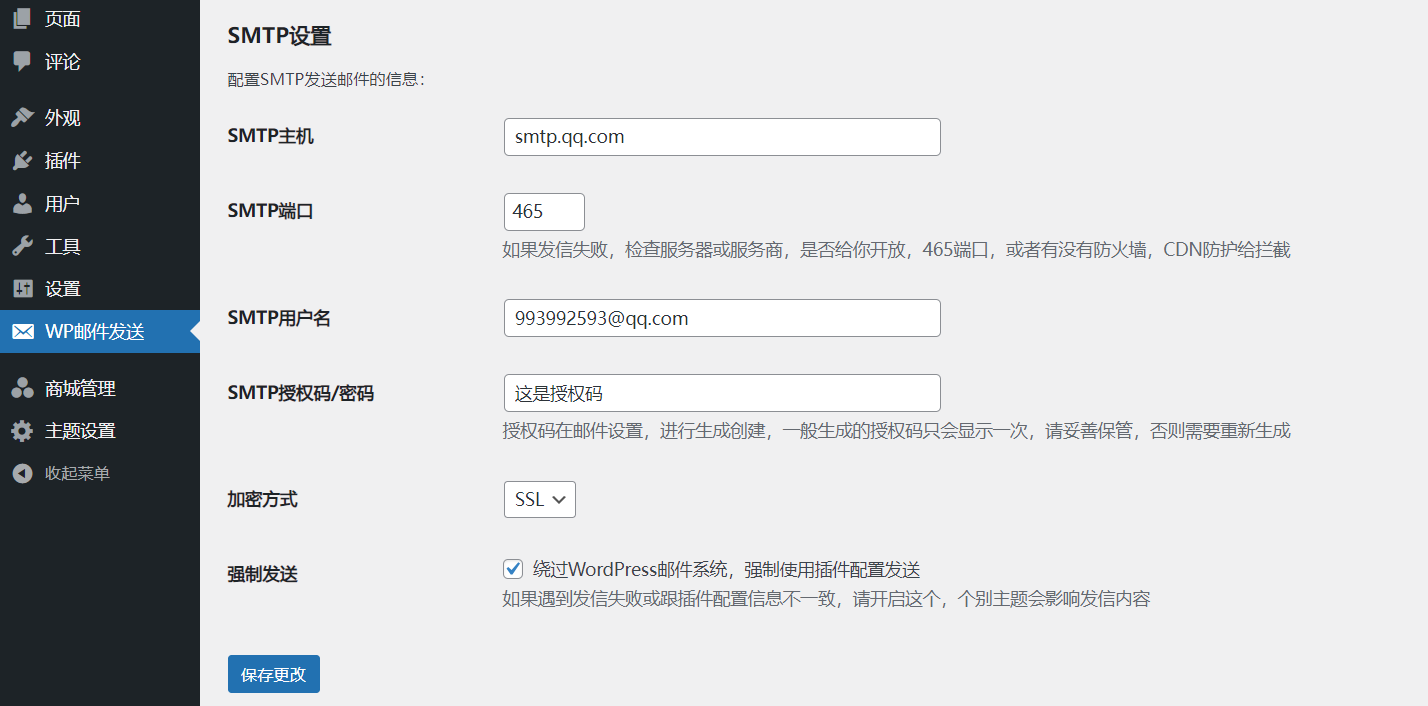 配置发信账号授权码