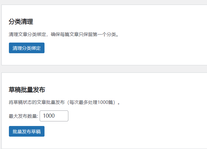 图2.批量发布草稿文章,和文章分类清理功能(截图展示)