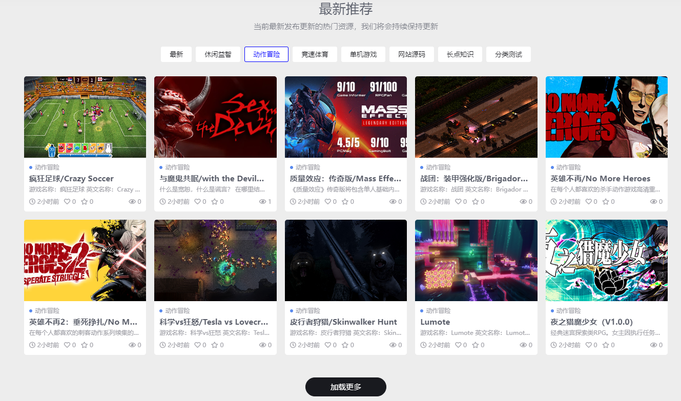 2.在前端,点击每个分类底部都有【点击加载更多】按钮,点击自动加载对应分类下的文章,非常方便