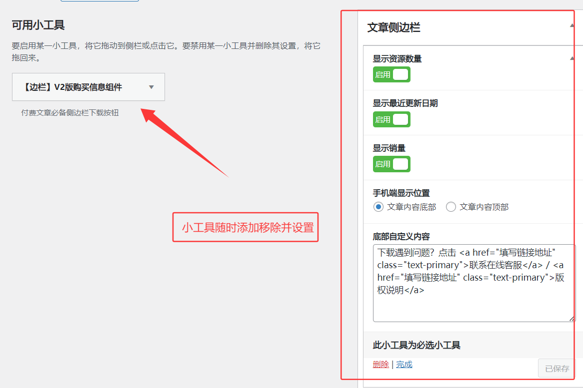 随时移除添加设置,独立小工具模块,和主题自带的不冲突