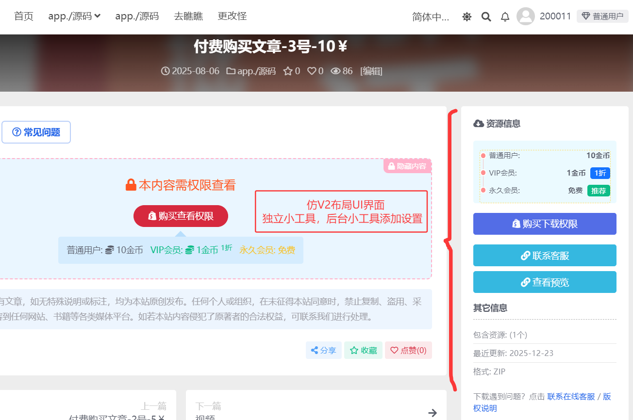 RiPro-V5主题【仿V2侧边栏-付费下载模块UI